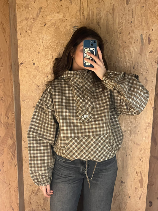BROWN BEIGE UMBRO x SLAM JAM MASKED HOOD PLAID OVERSHIRT (XLARGE) (DEADSTOCK) (NEW WITH TAGS)