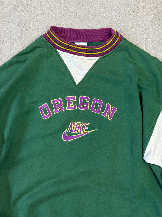 Early 90s Nike Made in Portugal Spellout Sweatshirt Green Grey Purple (Large)