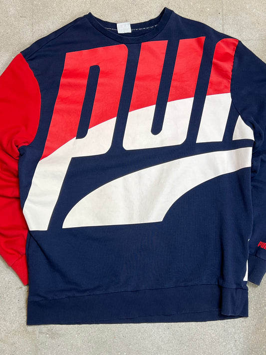 NAVY RED VINTAGE BOLD PUMA PRINT SWEATSHIRT (XLARGE)
