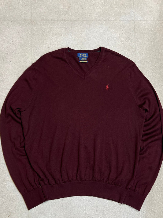 BORDEAUX VINTAGE RALPH LAUREN V-NECK KNIT (LARGE)