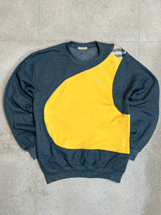YELLOW BLUE VINTAGE BURBERRY RENEWED UPCYCLED SWEATSHIRT (SMALL)