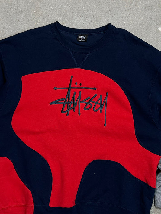 NAVY GREY VINTAGE STÜSSY RENEWED UPCYCLED SWEATSHIRT (XLARGE)