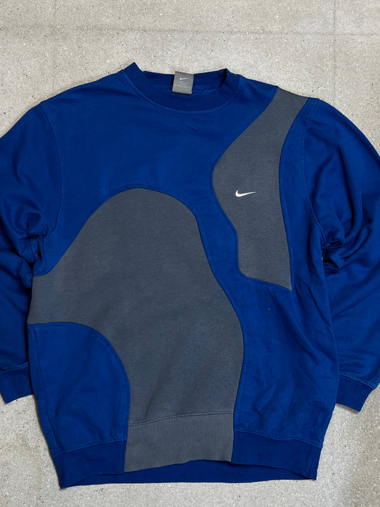 GREY BLUE VINTAGE NIKE MINI SWOOSH RENEWED UPCYCLED SWEATSHIRT (LARGE)