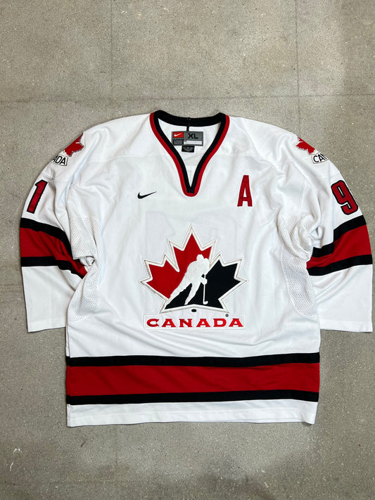 SELTENES VINTAGE TEAM NIKE x 2002 OLYMPICS TEAM CANDA JOE SAKIC 91 EISHOCKEY-TRIKOT (JOE SCHAFFT DIE GOLDMEDAILLE ZUM GEGEN USA) (XL)