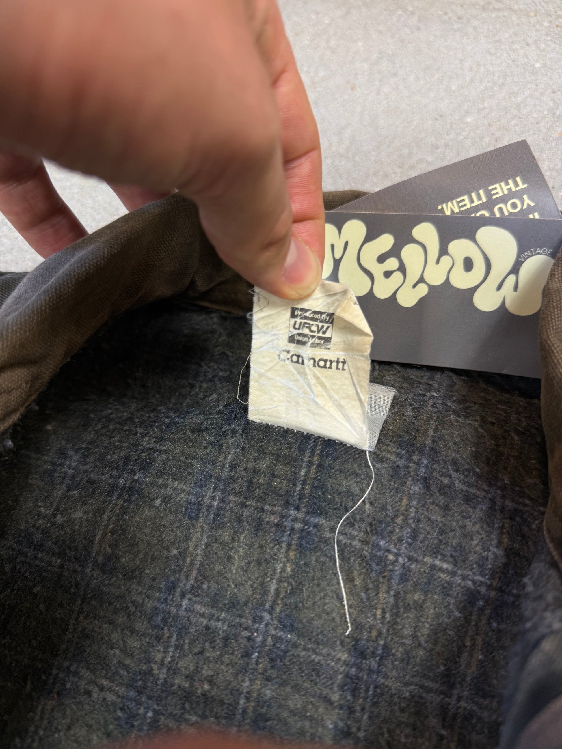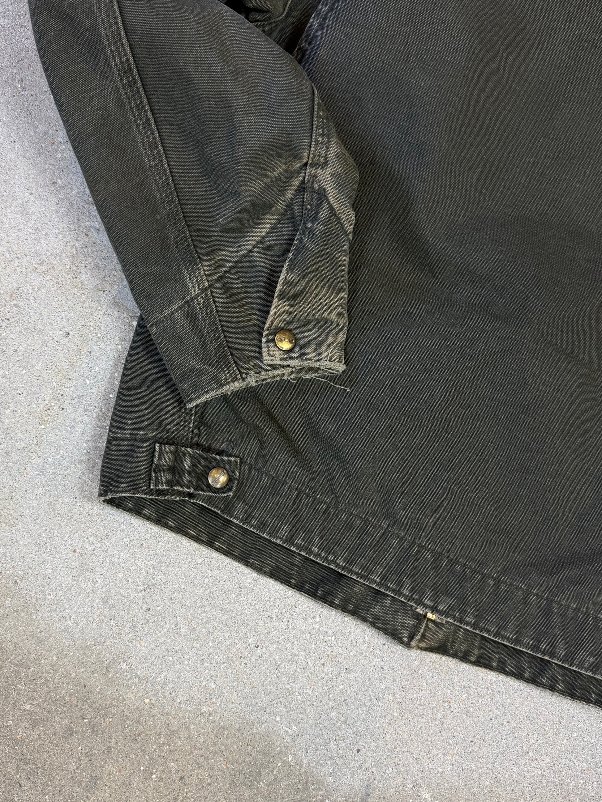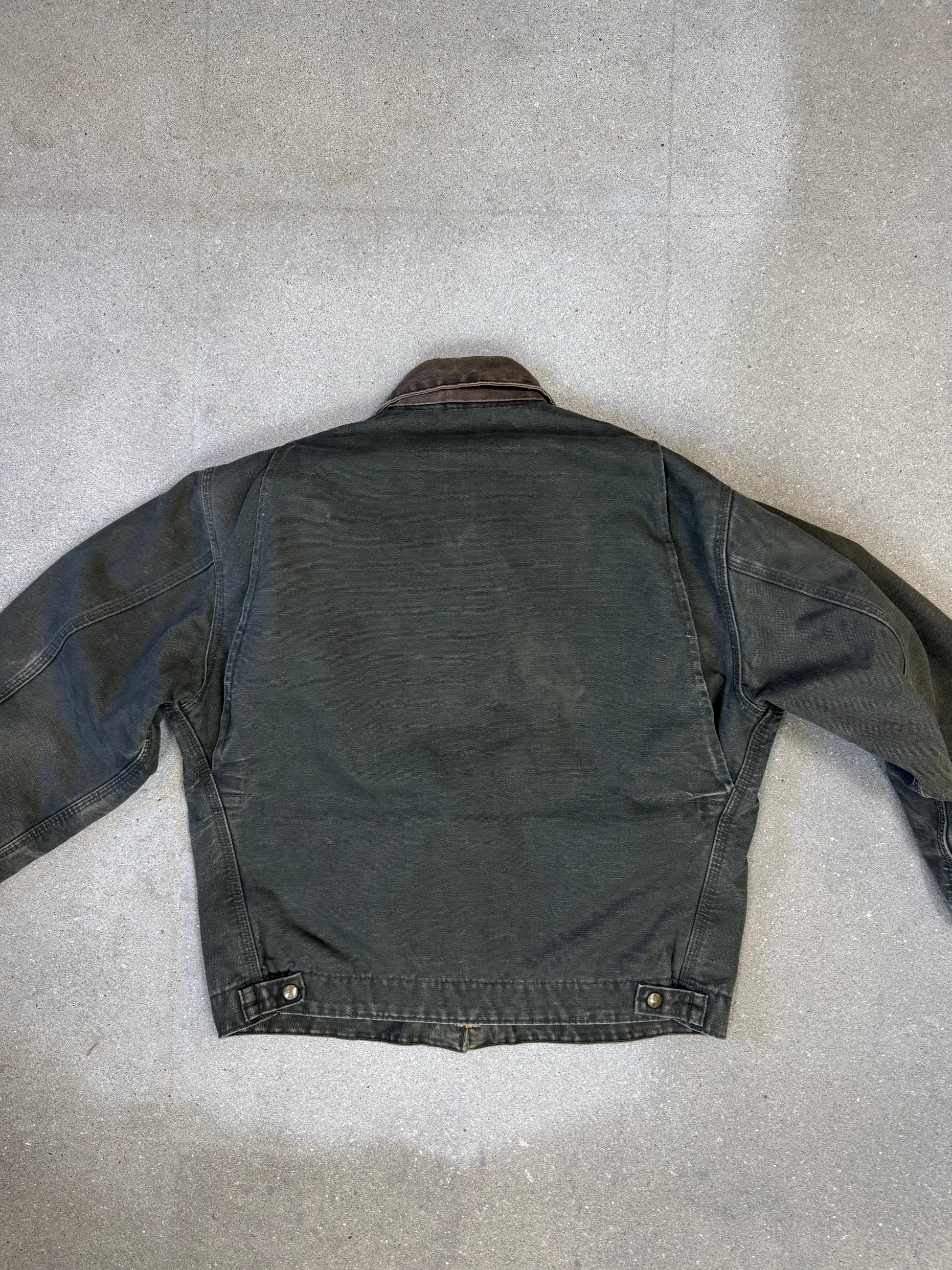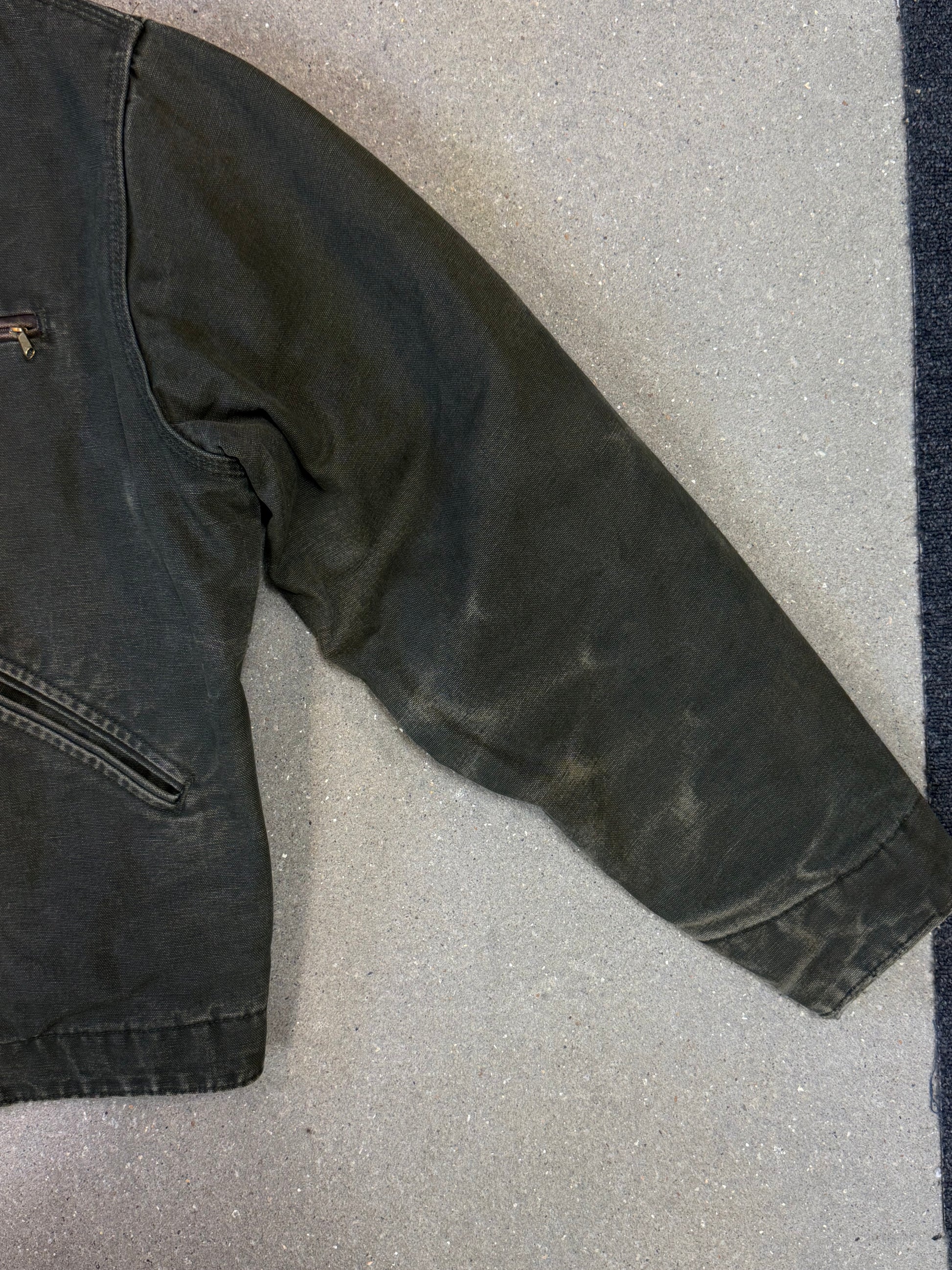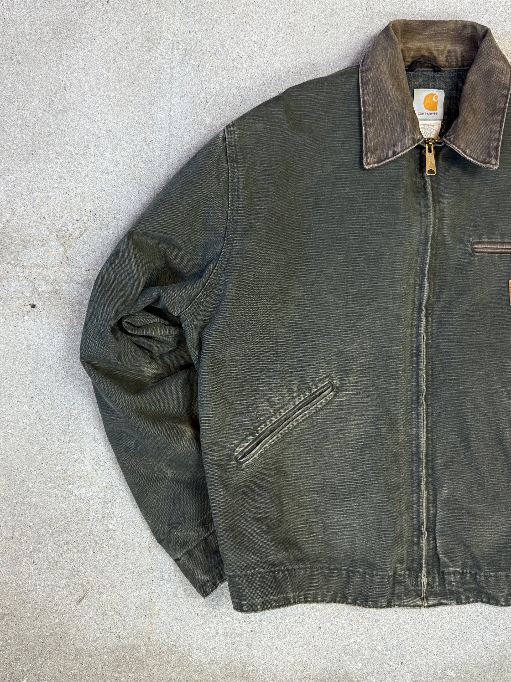 1990s Carhartt Detroit Jacket J97MOS 'Made in USA' faded green / brown contrast collar