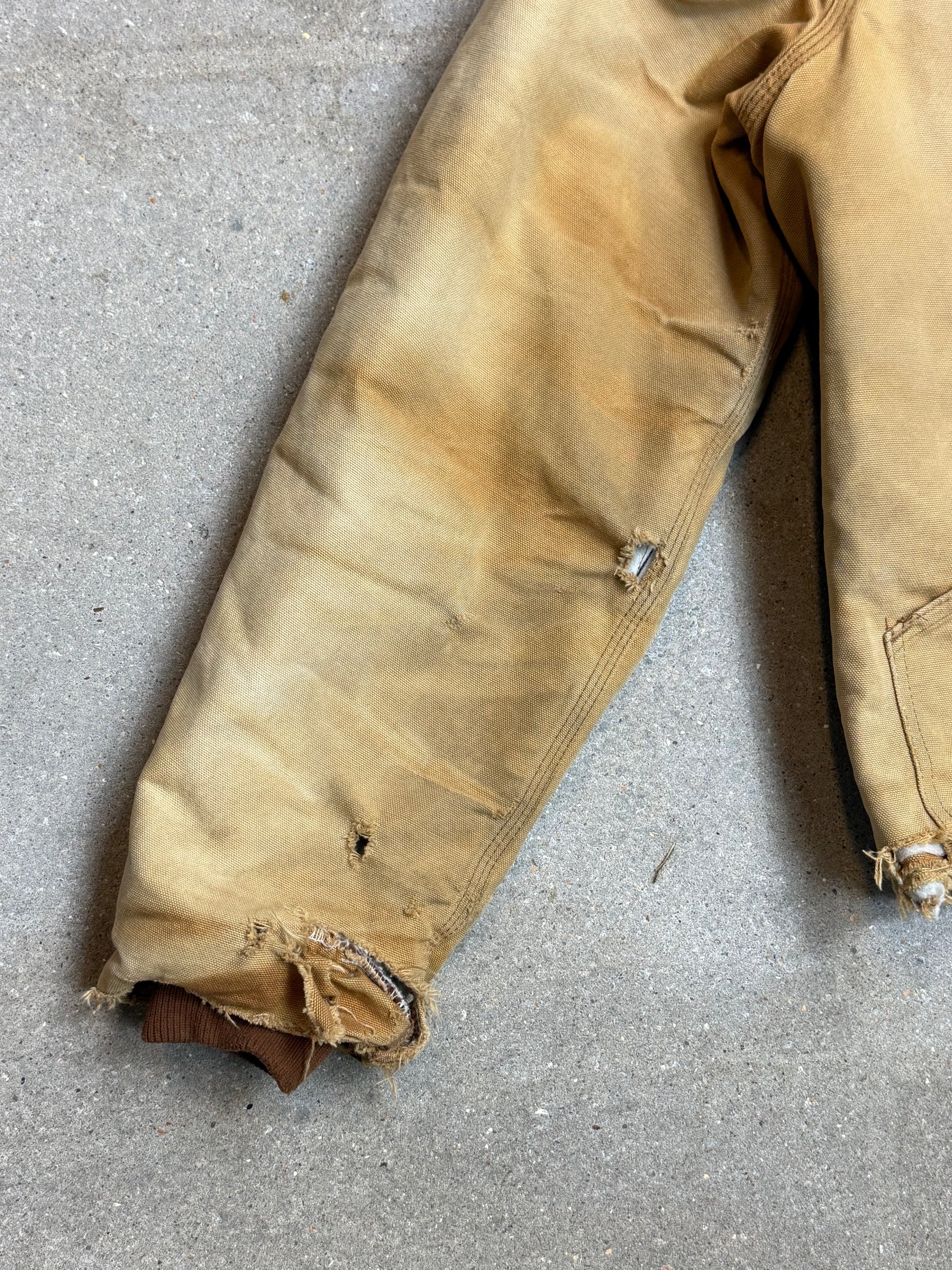1990s Carhartt Heavy Distressed J02 BRN Insulated Jacket Duck Canvas Coat (Large)