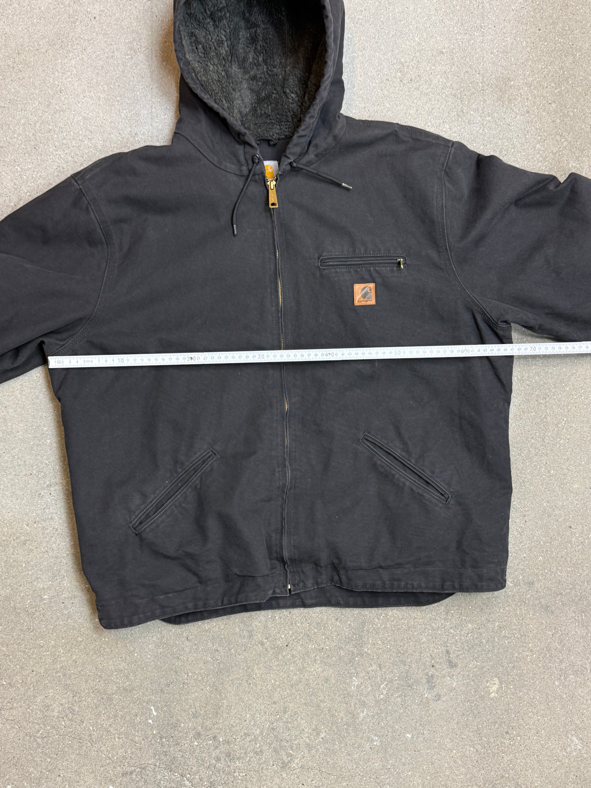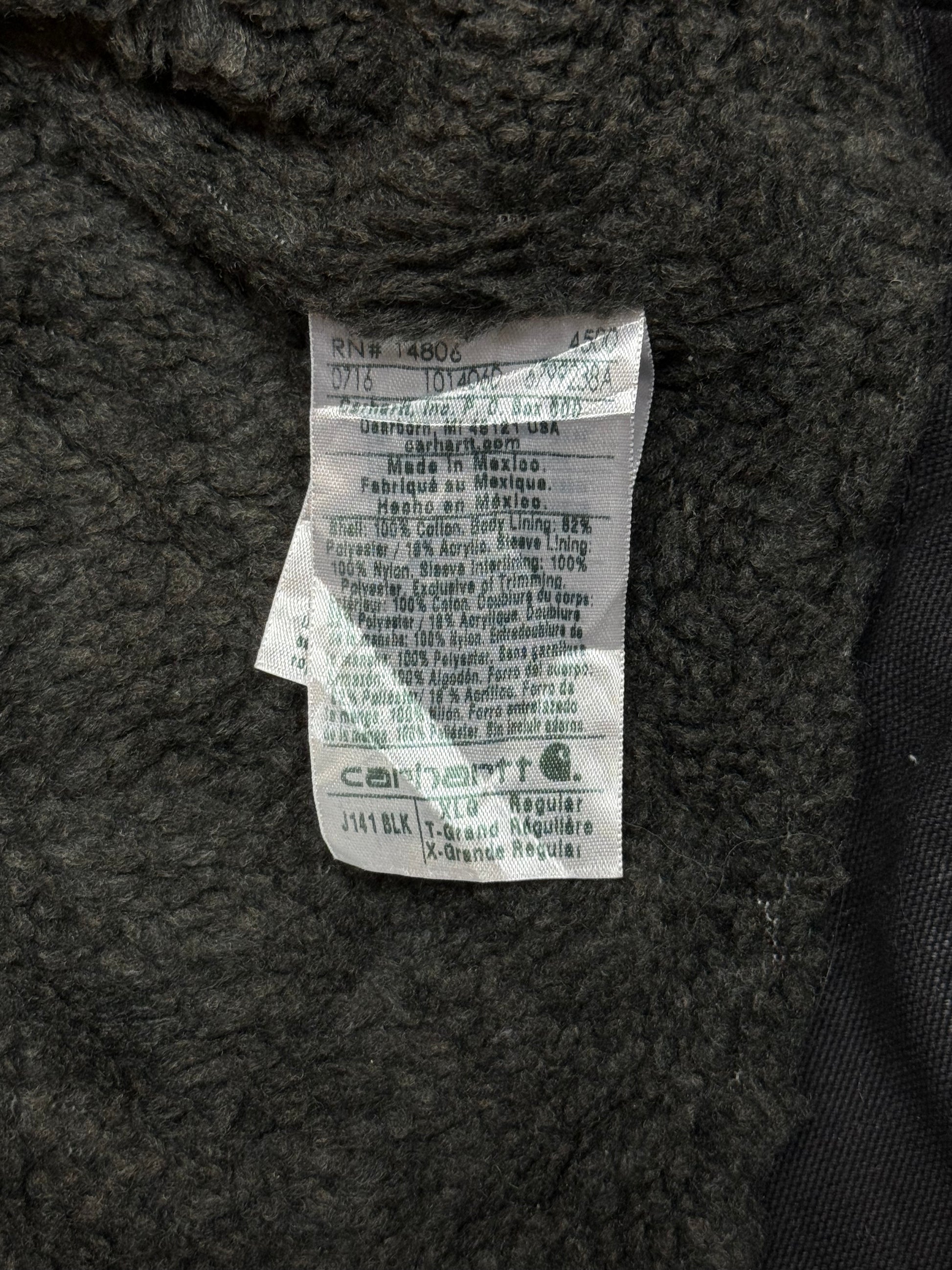 1990s Carhartt J141-BLK Mens Black Sherpa Lined Work Hooded Active Jacket (size XL Regular) Made in Mexico