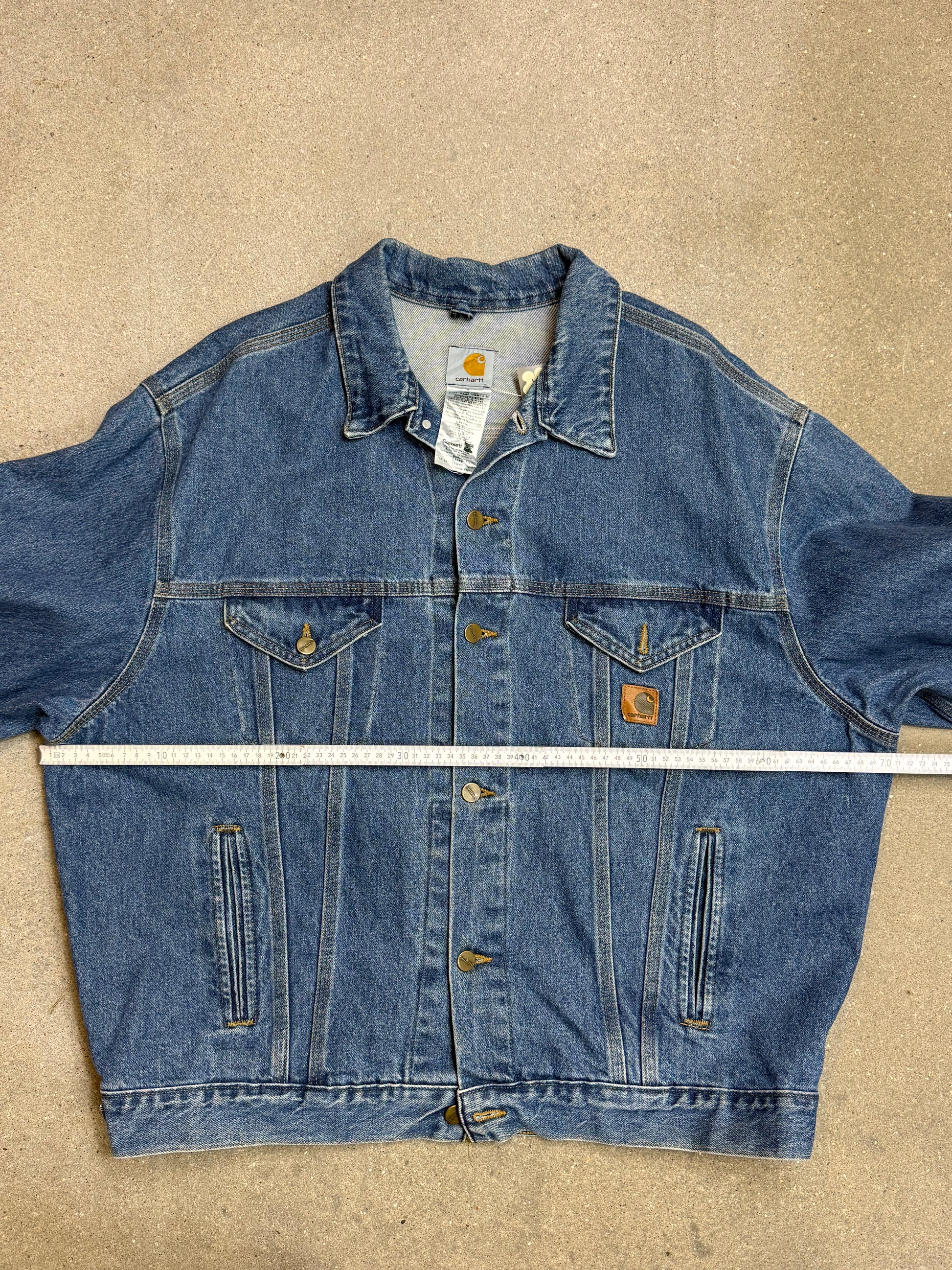 2005 Y2K Carhartt Jeans Jacket J12 DST Mens Medium Blue Denim Trucker Made in USA ( XL )