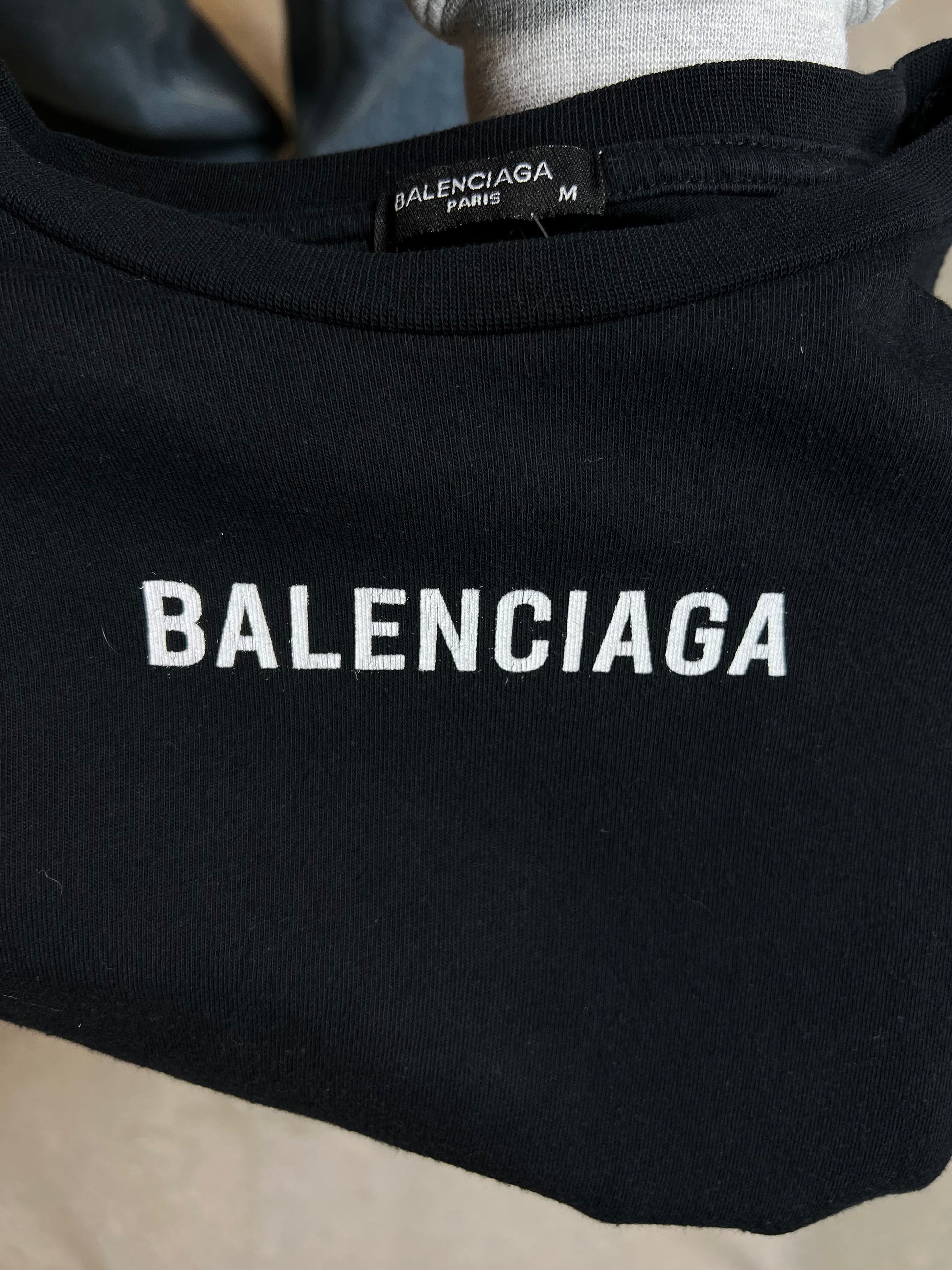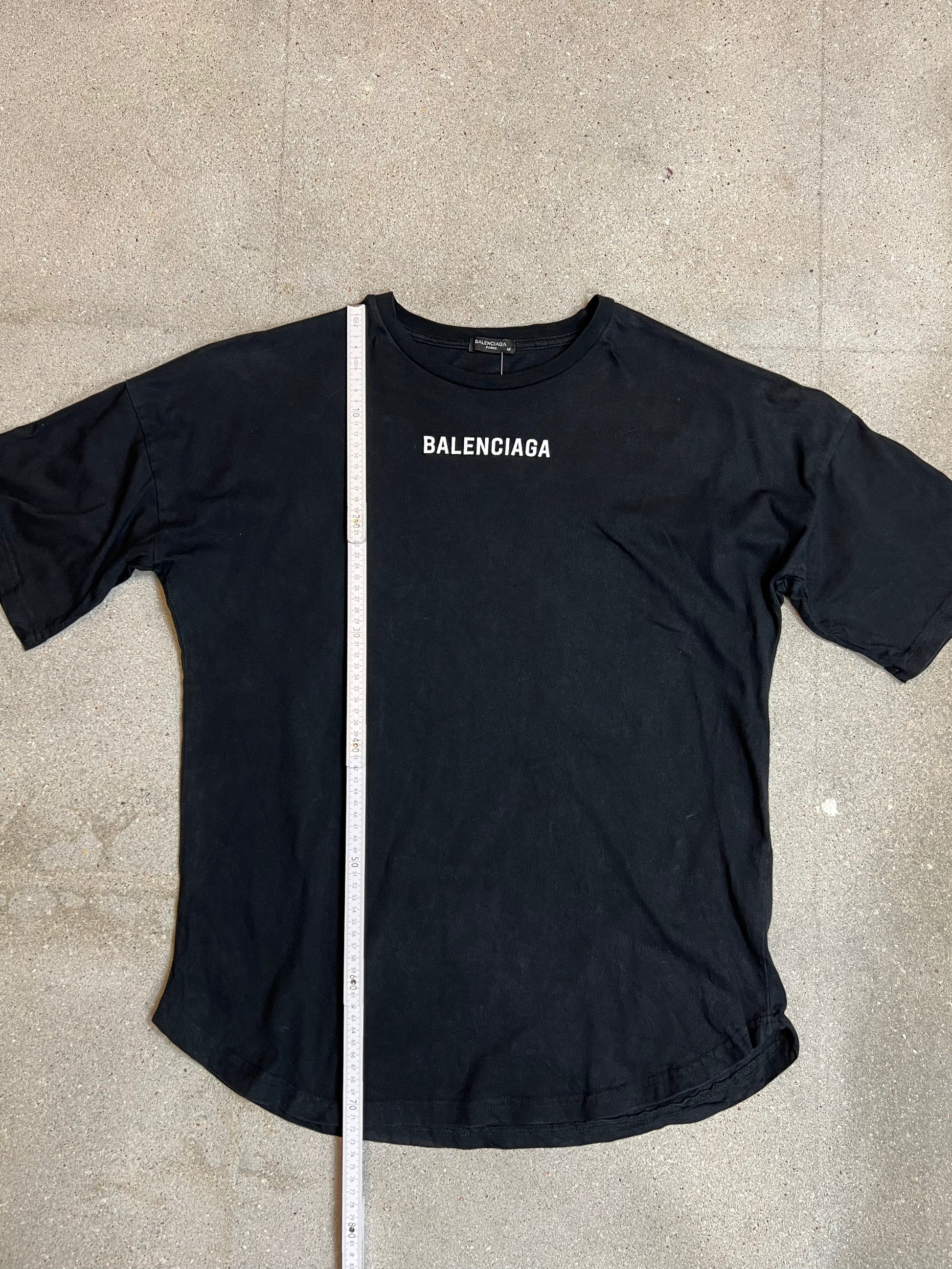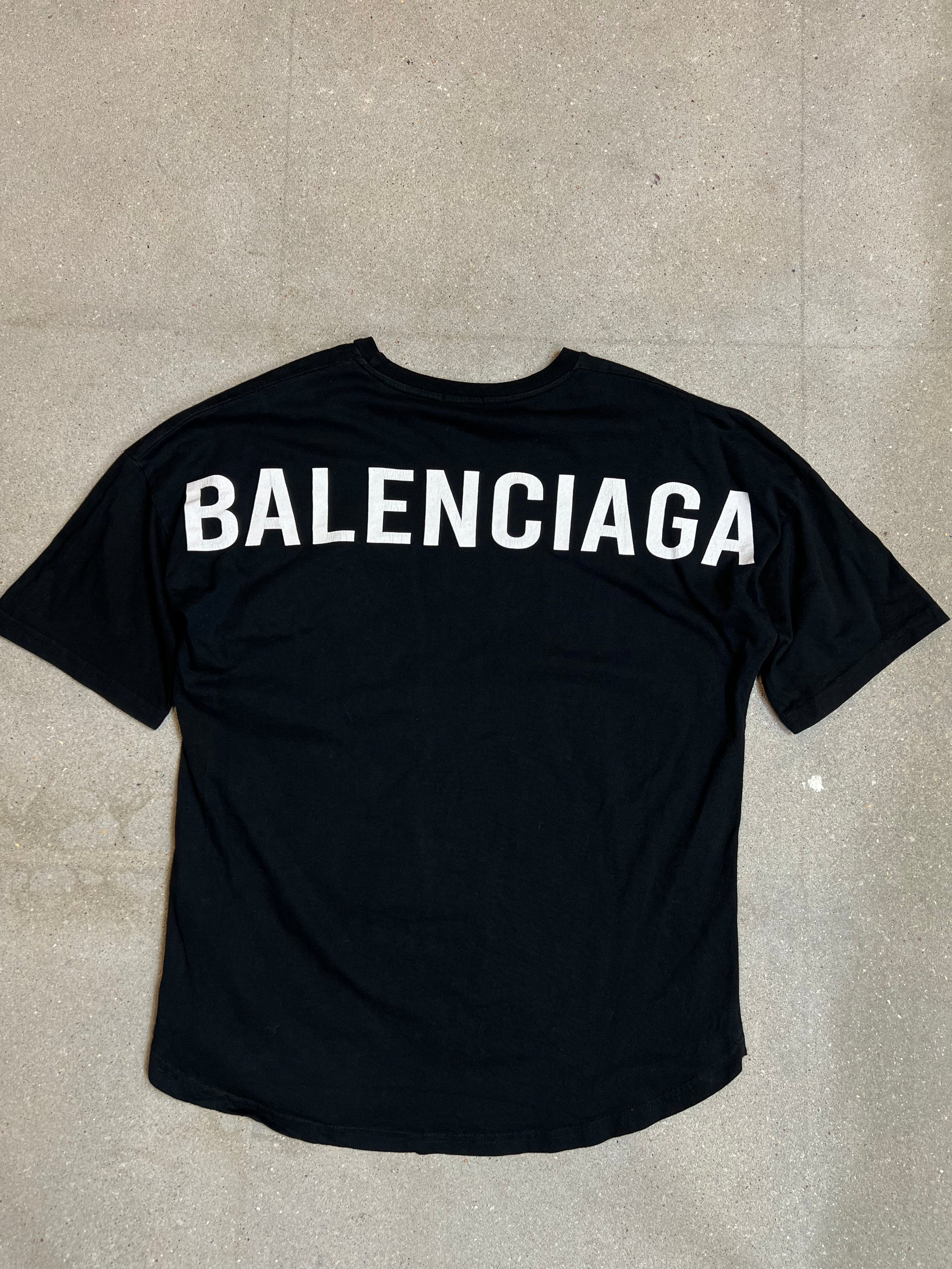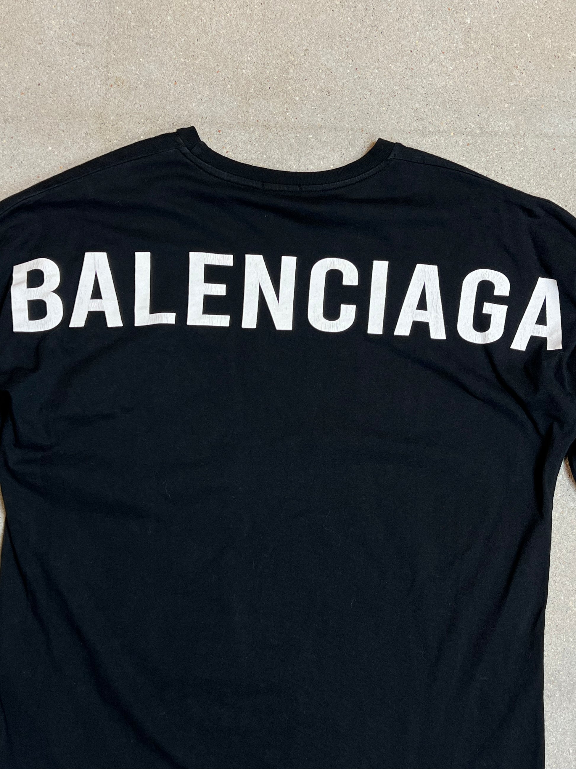 "Black Balenciaga Statement backprint small logo front tee (Medium)"