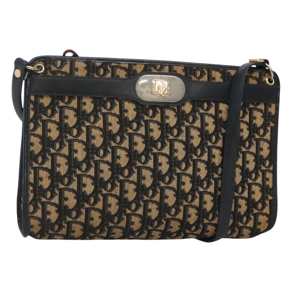 Christian Dior Trotter Canvas Shoulder Bag Navy Gold